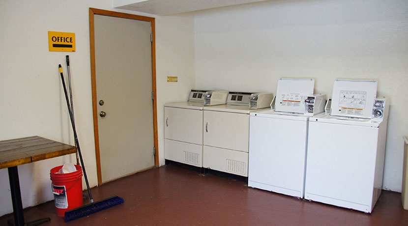 - Common Laundry Facilities – Coin operated, open 7am – 10pm daily with 4 washers, 4 dryers, double tub sink and folding table